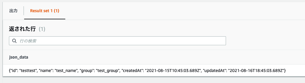 json_data JSONというように、JSON型のカラムを1つのみ定義しています。